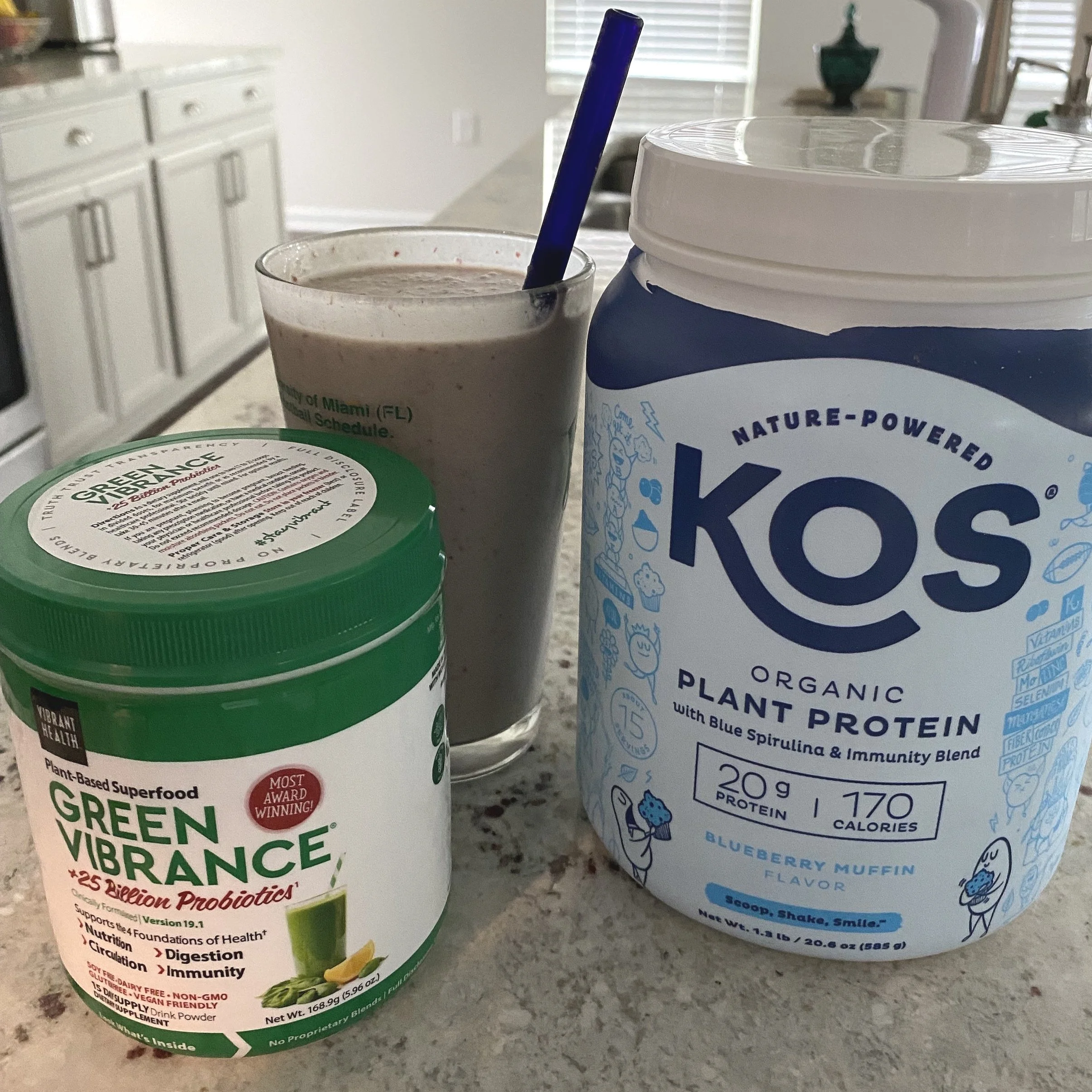 1 scoop of Athletic greens OR *Green Vibrance (love both of these) & they both provide a scoop.